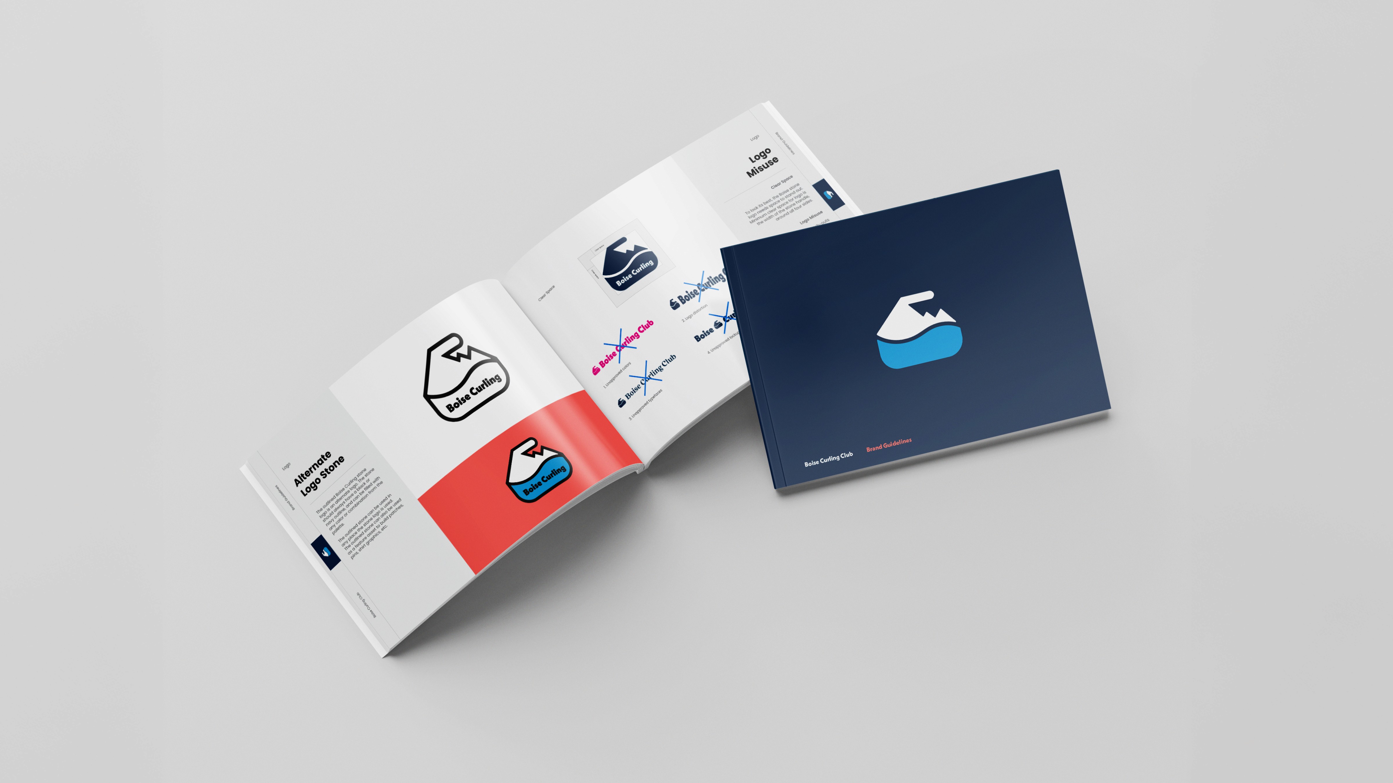 Inspired by the meandering Boise River and the majestic Idaho mountains, we created a curling stone brandmark that symbolizes the club’s deep-rooted connection to their surroundings. This iconic curling stone became the foundation of the full brand identity, elegantly scaling down for a tiny curling pin and scaling up for bonspiel team uniforms. A comprehensive brand kit set the stage for brand consistency as they began promoting the BCC future.