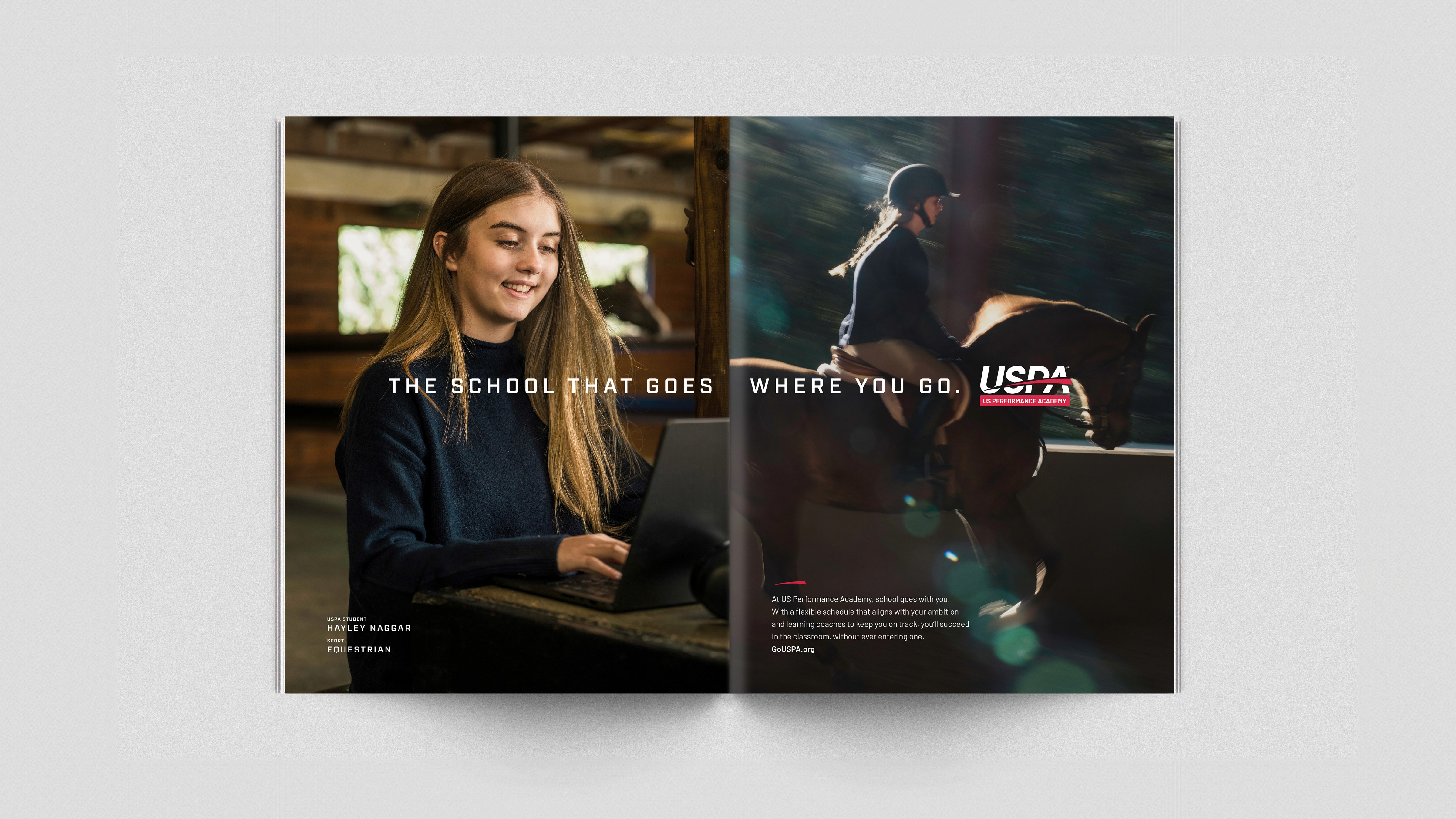 “The school that goes where you go.” This platform quickly captures the USPA ethos - an online school that goes wherever your sport or life takes you. We captured both still and video libraries over a 3-day shoot, using real USPA student athletes. The brand rolled out on a refreshed website, social ads, social posts, event ads, and athlete events.
